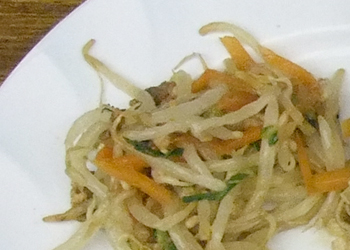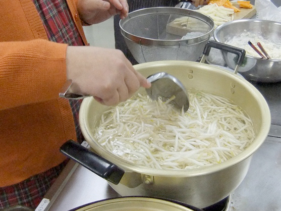 もやしとにんじんをさっとゆで、水を切っておく。