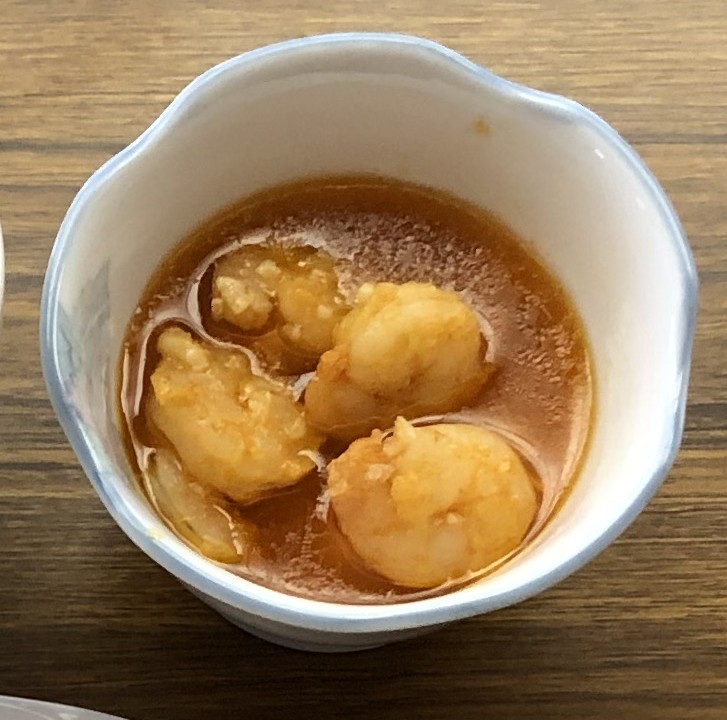 焼けたトルティージャを切り、切ったパンにのせ串で刺す。